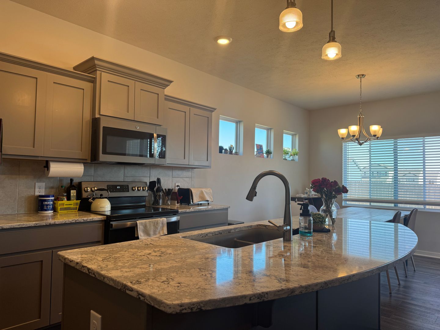 This beautifully maintained 4-bedroom, 3-bath ranch offers a bright, open layout with plenty of space for comfortable living and entertaining. The kitchen features quartz countertops, tile backsplash, a large island, pantry, wood laminate flooring, and an eat-in dining area that opens to the living room with a cozy corner stone fireplace. All appliances are included, even the washer & dryer. The spacious primary bedroom includes a private ¾ bath with quartz countertops, double sinks, and a large walk-in closet. Two additional bedrooms, a full bathroom, laundry room, and convenient drop zone complete the main level. The finished basement offers a large rec room, fourth bedroom, and ¾ bathroom along with ample storage space. Outside, enjoy a flat backyard with a deck, included playset, partial fencing, and sprinkler system—perfect for relaxing or play. Located in the Bellevue School District close to Offutt AFB with easy interstate access. Available June 1st for $2750 per month. Small dogs are allowed with a pet fee of $50 per month. Rental application is $45 per adult and security deposit is $2750. Contact Justin Ogburn for information or showings at 402.600.3006 or justino@revelne.com.